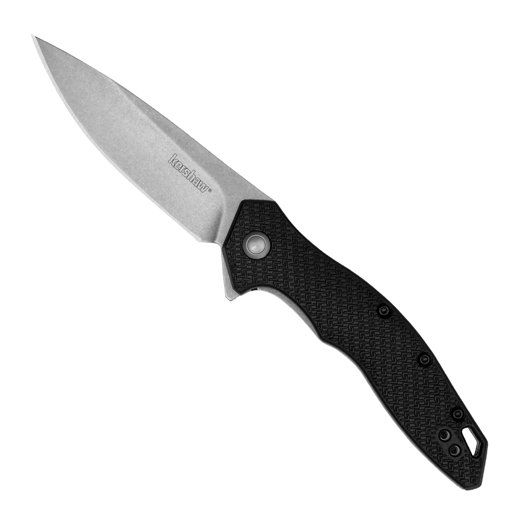 The Kershaw Shoreline flipper knife features a comfortable, 3D contoured profile. This knife boasts a drop point blade made of tough 8Cr13MoV blade steel with a classic stonewashed finish. This easy-to-sharpen steel is perfect for everyday carry, and the blade stays closed safely with assisted action until you need it. This blade is paired with black glass-filled nylon handles which are lightly textured in order to provide a comfortable grip. This knife is perfect for all your everyday cutting needs. Get yours today.